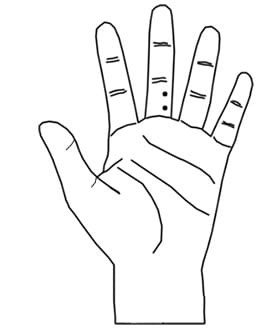 שתי הנקודות ממוקמות באספקט הפלמרי של האצבע האמצעית, על קו ה- D של החלק הפרוקסימלי. הנקודה הראשונה ממוקמת 0.33 צון מהקפל הראשון של האצבע והנקודה השנייה ממוקמת 0.66 צון מהקפל הראשון של האצבע.