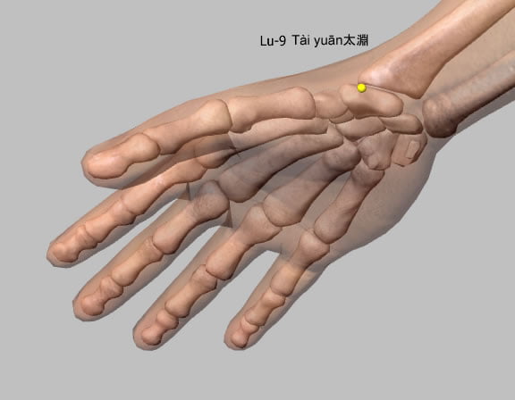 לכן ניתן להשתמש בנקודה על מנת לחזק את ה- Zong qi ולהוביל לסירקולציה חזקה יותר של דם. הרבה פעמים כשמרגישים שהדופק מאוד חלש דיקור של Lu-9 יכול לעלות את הדופק.