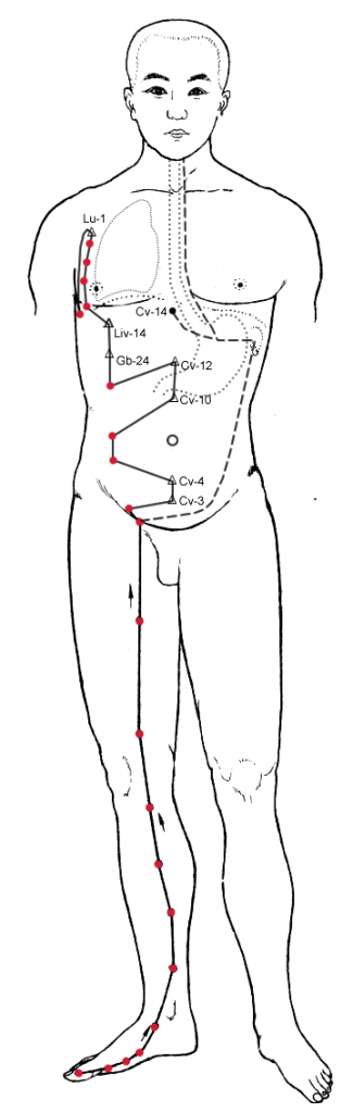 עולה אל הבטן התחתונה ועובר בנקודות Cv-3 ו- Cv-4.